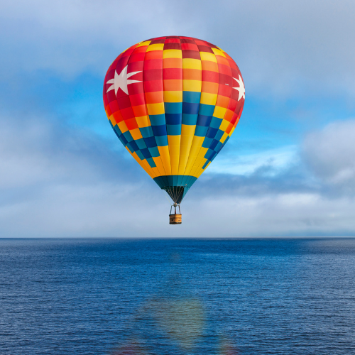 Disfruta un paseo en globo aerostático sobre la playa y contempla el amanecer desde una perspectiva única.